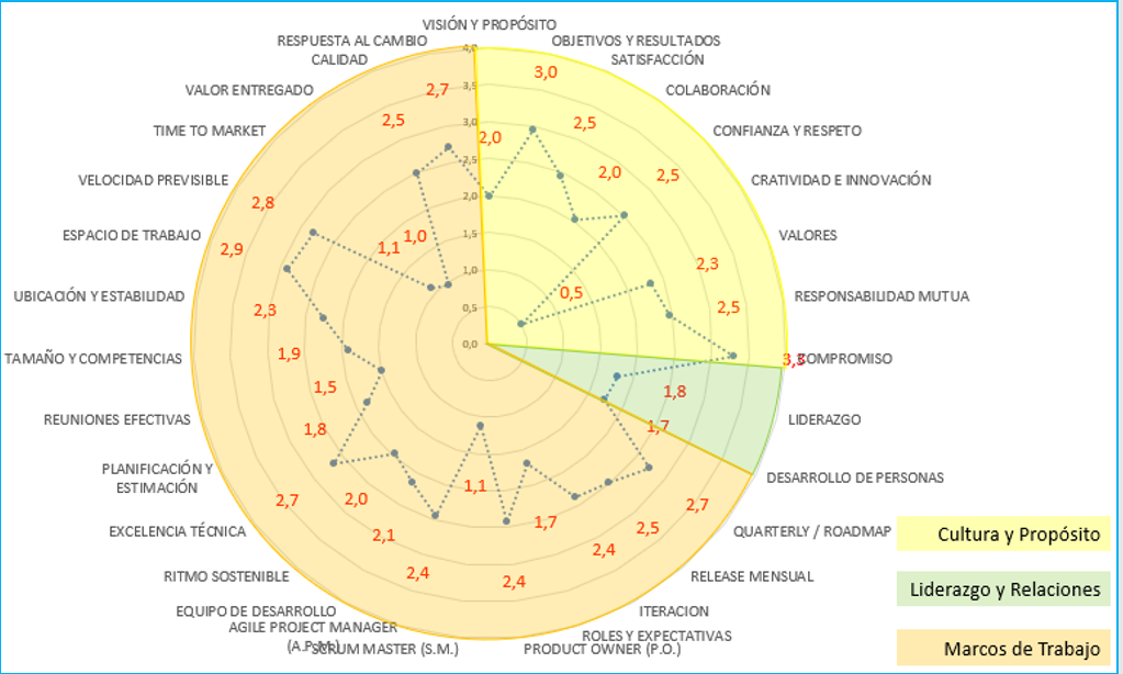 - Se analizan los resultados y se estima el nivel de madurez en HR Agile del Equipo.